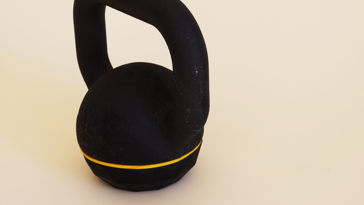 • Black kettle bell with yellow stripe.